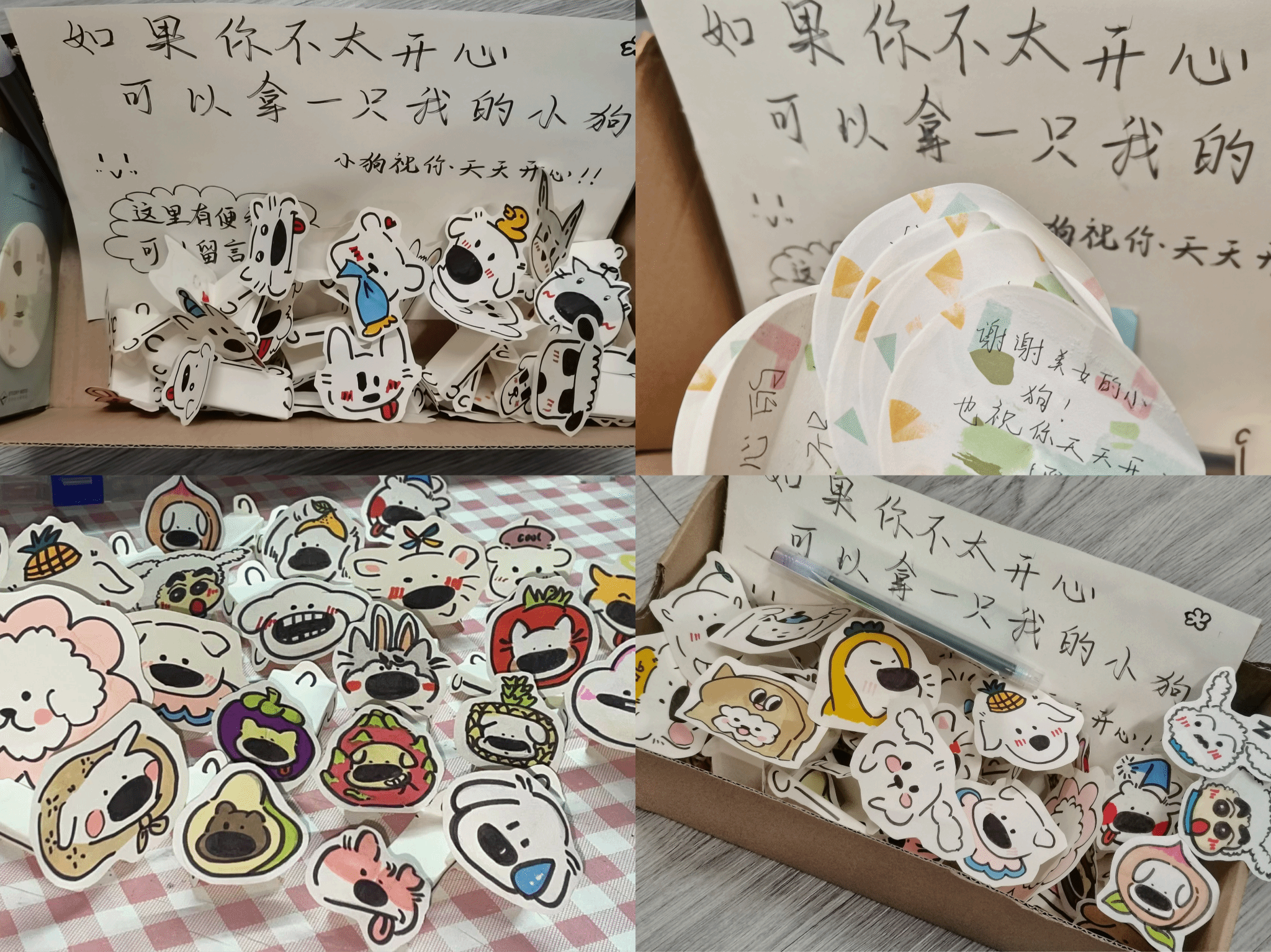 “我们觉得这是快乐的传递和流动,并不在乎能从中得到什么。”活动策划人之一、美术学专业2021级(2)班的毕唯依介绍,自己和室友偶然间刷到制作立体小狗的视频,便想结合专业优势,用手工绘制的方式来治愈同学们因生活学习压力而产生的低落情绪。