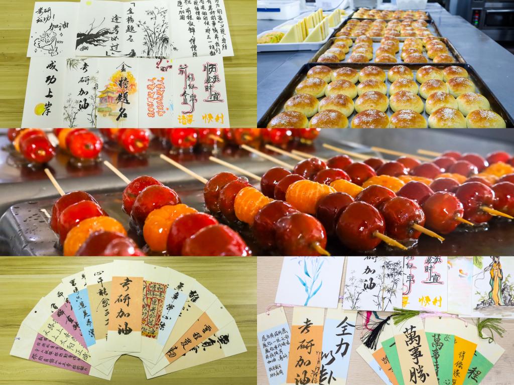“收到来自学弟学妹们亲手制作的糖葫芦和面包真的很感动。”美术学专业2019级(3)班的岳崇志在拿到礼物后第一时间分享给了朋友们。他表示,备考的过程紧张而枯燥,学院的暖心举措让他觉得感动的同时也收获了很多力量。“学院和老师都十分关心我们,我也会放平心态,努力考出自己满意的好成绩。”