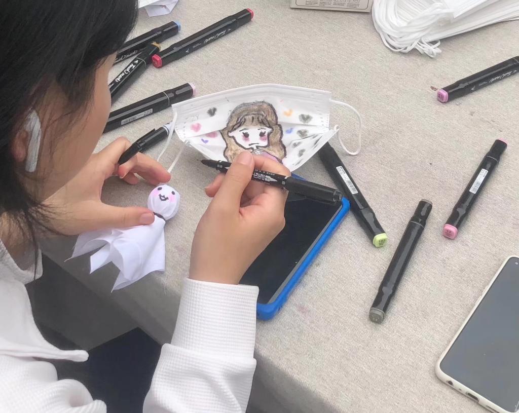手绘口罩图案、制作晴天娃娃、勾画个人肖像……5月7日,Beat365官方网站在该院教学楼广场处开展了“艺术疗愈”主题活动,300余位同学来到现场,以手代心,“放飞”灵感。