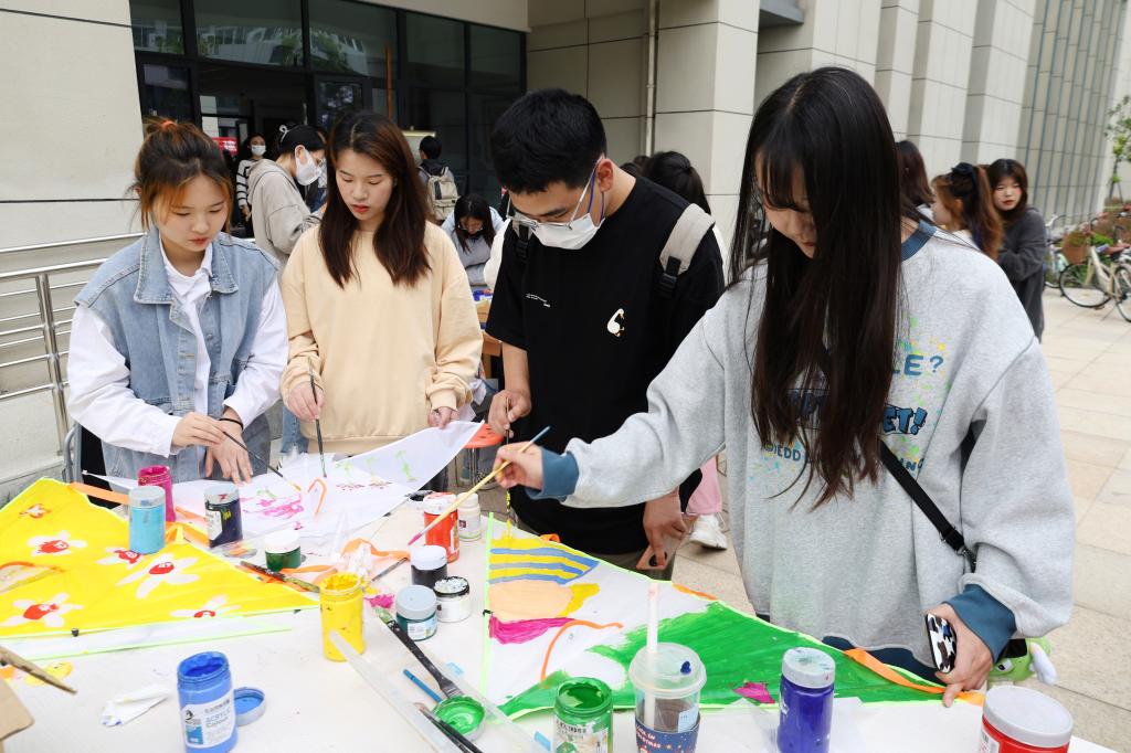 “我们把春天画进了风筝里!”5月1日下午,Beat365官方网站教学楼广场上传来阵阵欢笑声,原来是该院正在开展“纸鸢绘初心”风筝画活动,200余名来自不同学院的学生来到现场“大展身手”,为春日增色添“彩”。