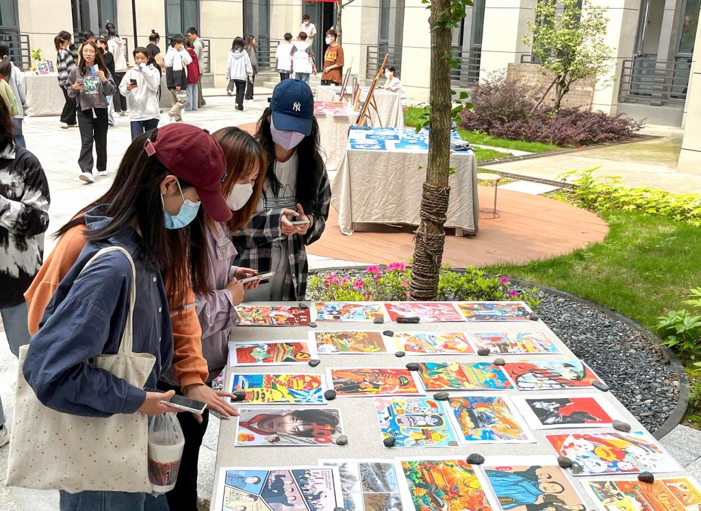 “哇,这幅画真好看!”“这个陶艺作品好精美呀!”……自活动开始,来参观展览的人络绎不绝,学生们时而停驻脚步欣赏、时而拿出手机拍照,展览现场热闹非凡。园林专业2021级的吴艳来到展览后,便对一个Q版鲁迅形象的陶艺“一见钟情”,“这些艺术作品将一些团史故事讲述得十分生动,进一步激发了我了解红色人物及故事的兴趣。”她表示,此后自己会更加主动地去了解相关理论知识,不断加强自身的思想建设。