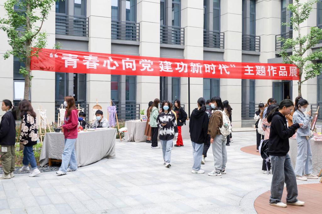由各班团支部、入党积极分子组织策划,学院12个俱乐部共同参与,一场以“青春心向党 建功新时代”为主题的艺术作品展就此展开。据院团委书记孟莉介绍,早在两个月前,学院各俱乐部就已开始征集作品。“此次展览是一次主题团日活动,希望通过这些作品同学们能够进一步了解团史故事。”