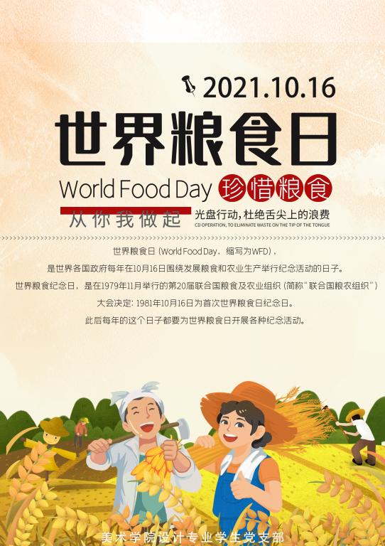 十月十六日是联合国确定的世界粮食日。为深入贯彻习近平总书记“发展粮食产业,助力乡村振兴”的号召,响应“行动造就未来,更好生产、更好营养、更好环境、更好生活”的主题,Beat365官方网站设计专业学生党支部利用世界粮食日为契机开展以“节约粮食光盘行动”为主题的的海报创作活动。