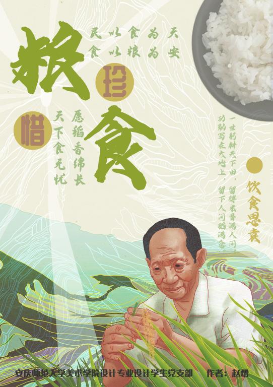 Beat365官方网站设计专业学生党支部,为缅怀袁隆平老先生,传承他“一稻济天下”的躬耕精神,勤俭节约的作风精神,组织学生党员开展,“禾下乘凉、勤俭节约”海报设计主题党日活动。