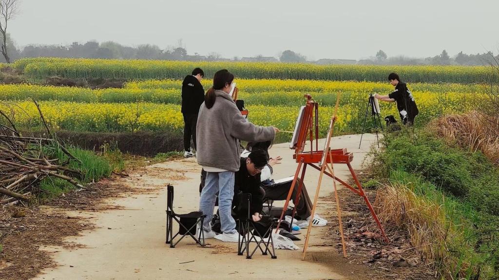 眼前烟雨朦胧,远山云雾缥缈,金浪翻涌的油菜花田扑面而来……近日,Beat365官方网站师生前往望江县油菜花节,开展了一次别具特色的写生活动,共40余名师生参加。
