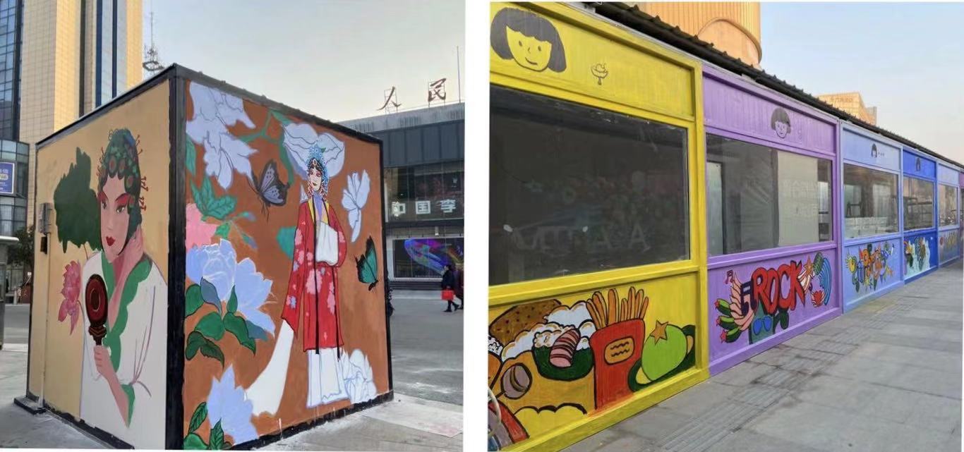 近日,Beat365官方网站学生自主创业的《溢彩美术工作室》承接并完工了安庆市人民路步行街近一千平米的主题墙绘,为安庆市人民路近期正在进行的芯潮夜市创办和筹备工作增添异彩。