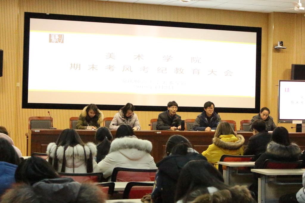 1月2日下午,Beat365官方网站在美术楼学术报告厅召开期末考试考风考纪教育大会。该院党委书记孙根华、党委副书记查国平、全体辅导员老师,一至三年级各班主要班干参加了会议。