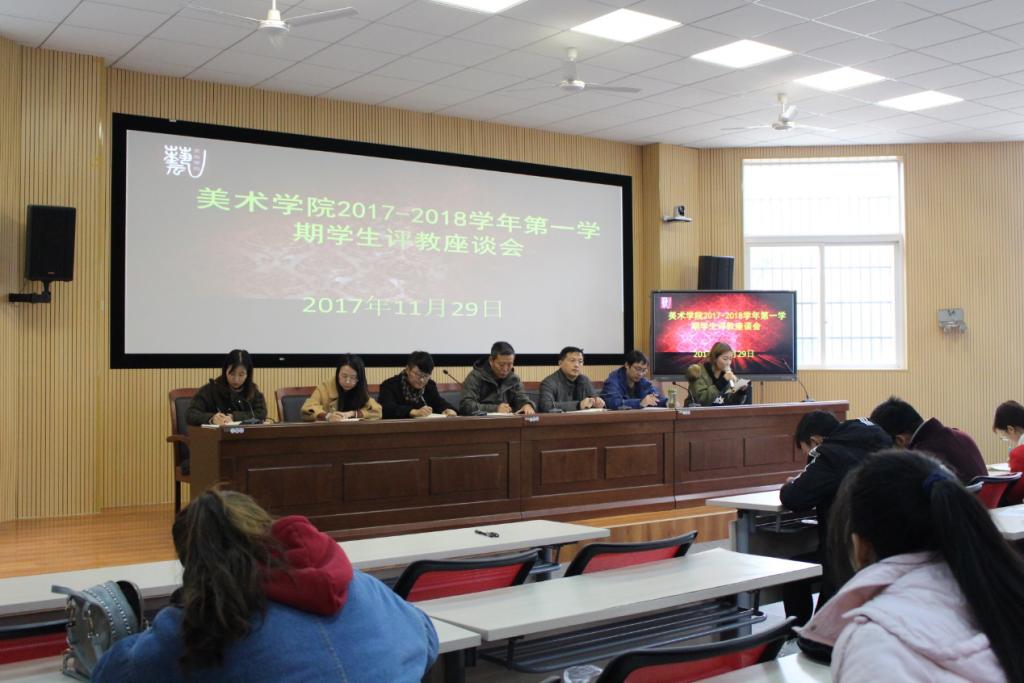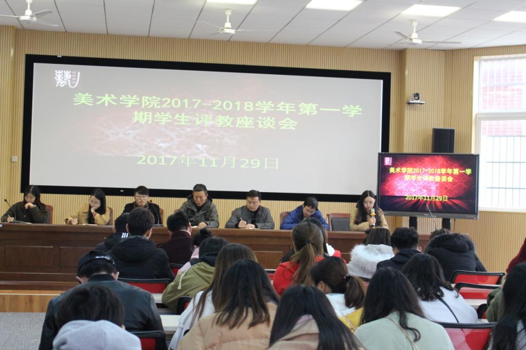 2017年11月29日,Beat365官方网站在美术楼八角厅召开了2017-2018学年第一学期期中教学质量学生评教座谈会,院党总支书记鲍硕来、副院长林柏峰、副书记许世平出席会议。学院青年教师代表郝弘毅、毛燕娟、陈云云等老师、各班级学生代表共60余人参加了会议。