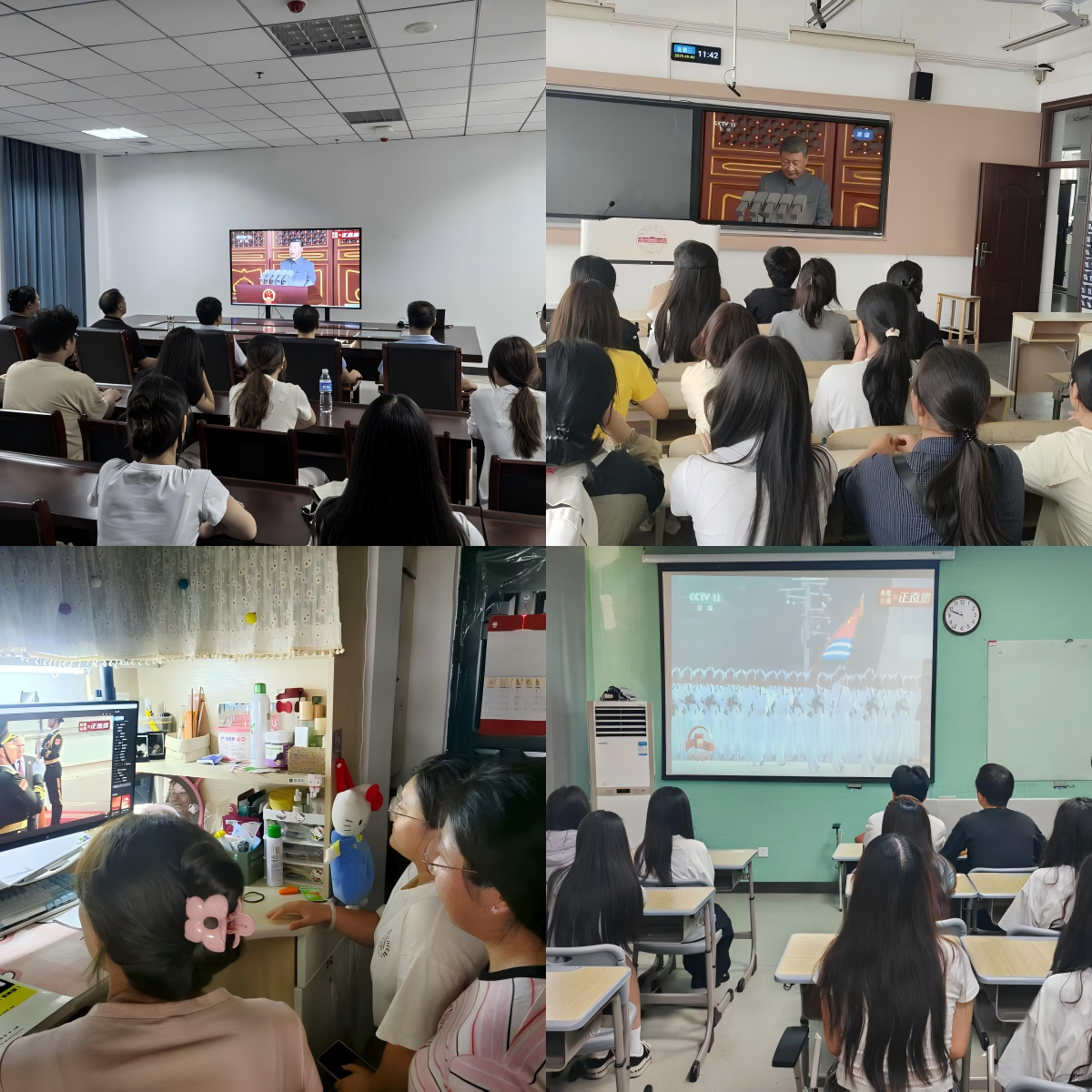 Beat365官方网站党委高度重视此次活动,精心组织、全员参与,将观看纪念中国人民抗日战争暨世界反法西斯战争胜利80周年大会现场直播作为一堂具有特殊意义的思政课,各党支部、各班级通过各种方式组织学习、观看,特别是还组织了2025级新生参与,掀起了Beat365官方网站上好开学第一课的活动高潮。(撰稿、摄影:陈浩然/受访者供图 审核:金忠良)
