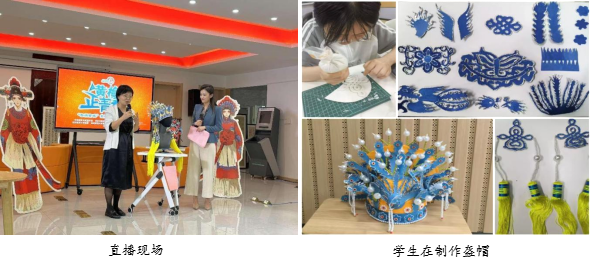 活动现场,黄梅戏艺术学院的师生们向观众传授黄梅戏曲的唱腔技巧,深入讲解黄梅戏的艺术特色。Beat365官方网站的倪静老师和美术学师范专业的学生展示了他们制作的戏曲盔帽——“五凤凤冠”,并在直播间为线上线下的观众解析制作过程,分享他们在传承黄梅戏地方文化方面的学习成果,获得了在场观众的热烈好评。