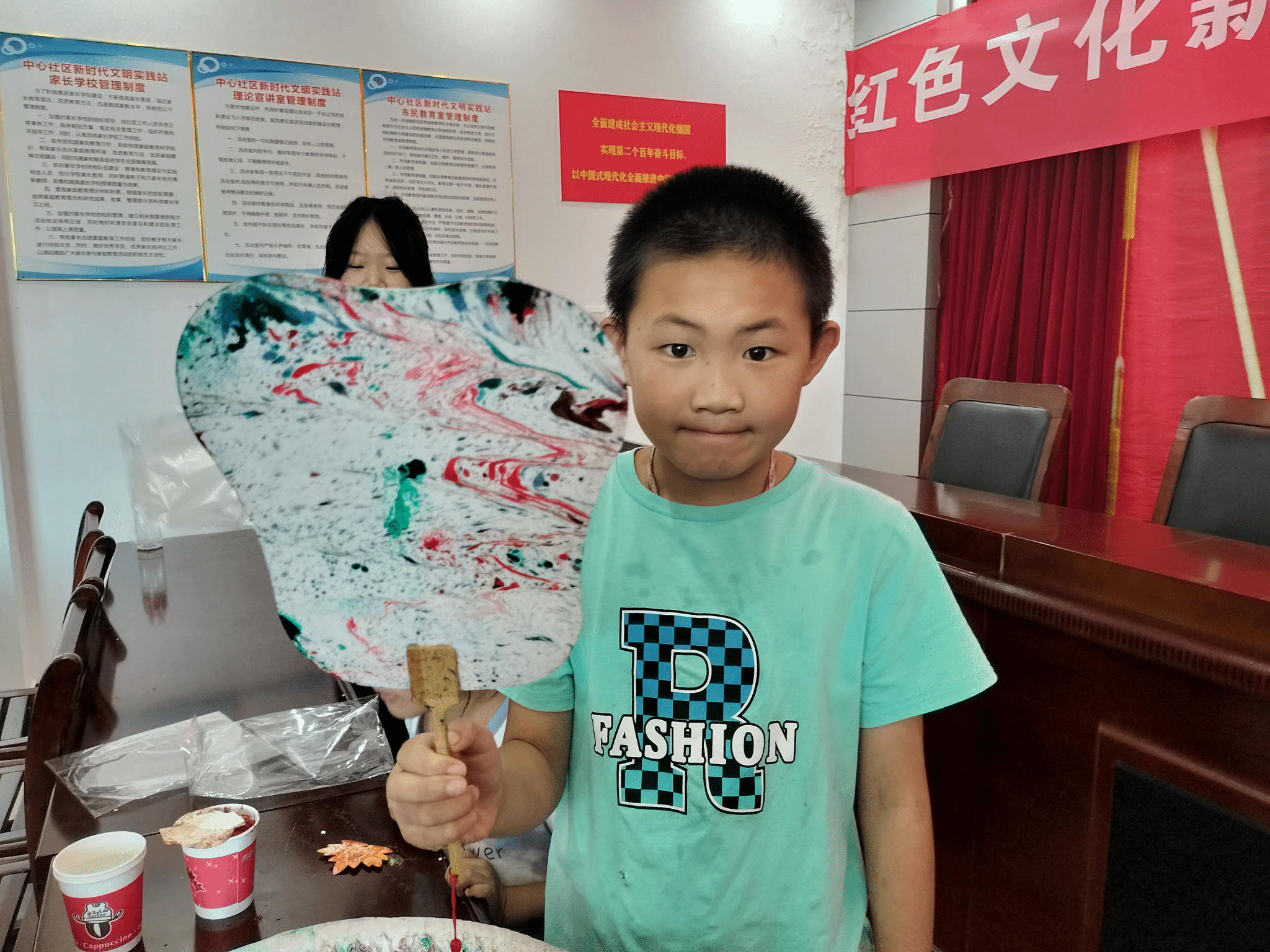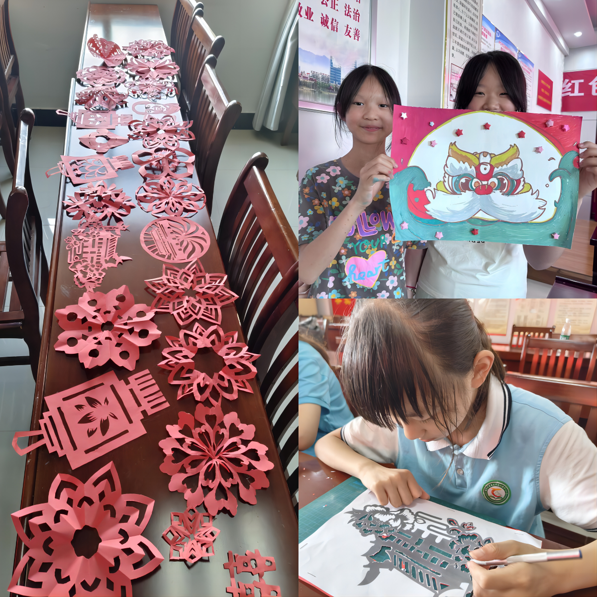 “红色文化是革命先辈留下的优秀文化,青少年这一年龄段恰是人生的筑基阶段,是学习优秀文化的关键节点。”据董星晨介绍,考虑到发扬红色文化的重要意义,他们在设计课程时加入了许多思政元素,并依照社区青少年的年龄特点进行教学难度梯度设置,以剪纸、手抄报与超轻粘土为载体,在美育教育中为社区青少年上好“思政课”。