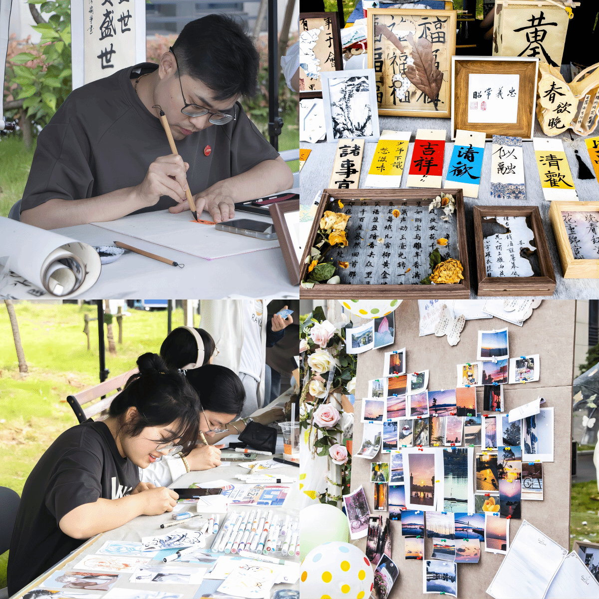 据悉,艺术节展出的千余件作品均为各艺术俱乐部的课程作业,涵盖望江挑花、剪纸、陶瓷等11种艺术形式。俱乐部作品围绕红色文化、中国传统美学意象等多主题创作,集中体现了学生们的创造力与想象力。此外,各俱乐部展点前用于装饰的油纸伞、明信片等均为俱乐部成员的“小巧思”,多元化的手工装饰品成为了艺术节中的创意点缀。