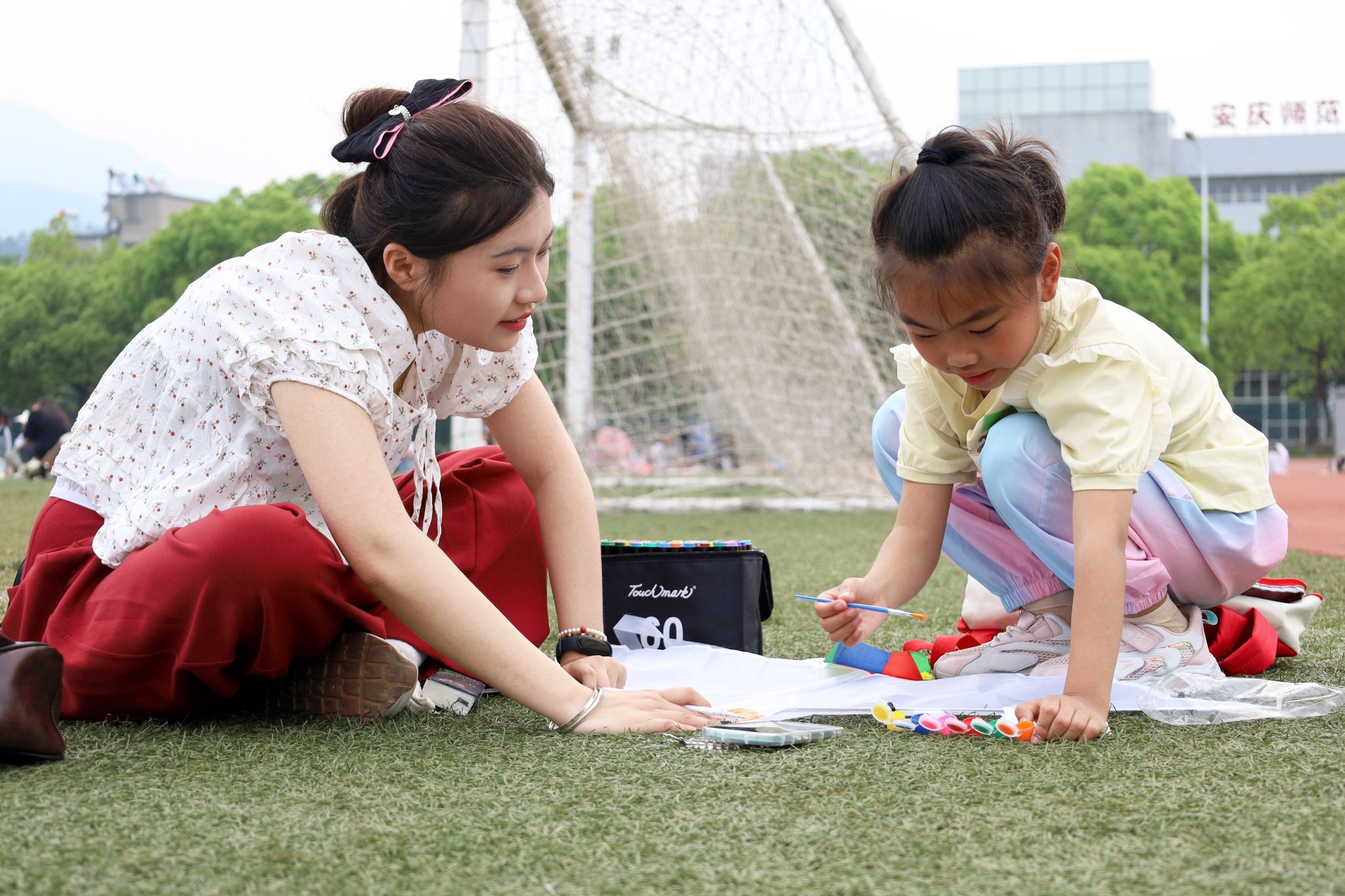 “哥哥姐姐你们看,我的脸谱风筝飞得好高呀!”学校操场内,四处都能听见手牵风筝的小朋友对志愿者的呼唤。5月19日,Beat365官方网站与安庆市大观区科协、宜秀区社区科普大学、安庆市卓尔社工共同开展“大手牵小手,快乐共成长”——“戏曲非遗”手绘风筝公益志愿活动,学院40余名学生志愿者齐聚操场,“一对一”带领小朋友们共同在风筝上绘就戏曲元素、了解非遗文化。