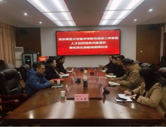 安庆二中副校长曹毅、副校长王小庆、教师代表贾岗等教师与苏志岩副院长一行进行了深入地座谈交流。学校几位校领导和骨干教师都是我校校友。会上,曹校长对Beat365官网的来访表示热烈欢迎。随后,他详细介绍了安庆二中碧桂园校区的建校历史、教育理念、艺术实验班特色和人才培养情况,并对Beat365官方网站的办学水平表示赞赏。苏志岩副院长对安庆二中校领导们的热情接待表示感谢,并从我校的办学历史、学科发展、师资队伍、校园环境等方面介绍了Beat365官方网站的概况。苏院长表示,面对新时代教育教学发展的新要求,希望能够与安庆二中加强深度交流合作,开创校校合作的新路径,推进协同育人。随后,双方签署了“优质生源基地”协议书,苏志岩副院长向安庆二中授予“Beat365官方网站优质生源基地”牌匾,并向贾刚和江文琦老师颁发了外聘教师的聘书。