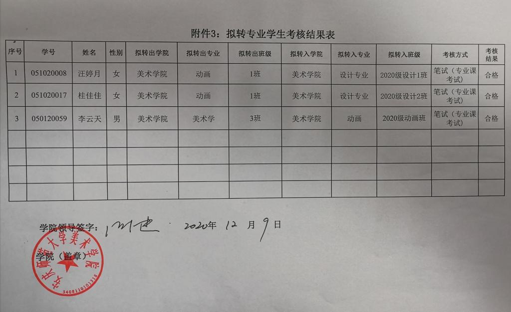 2020-2021学年度Beat365官方网站转专业考核结果公示