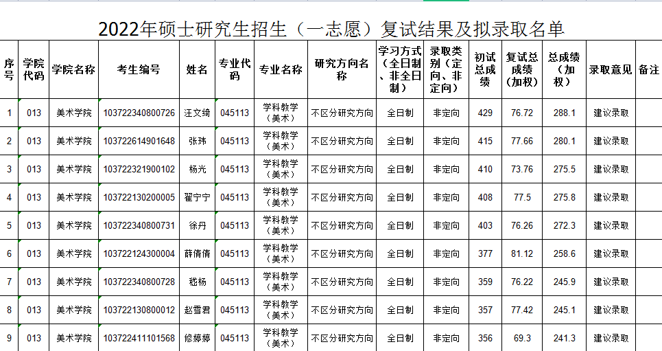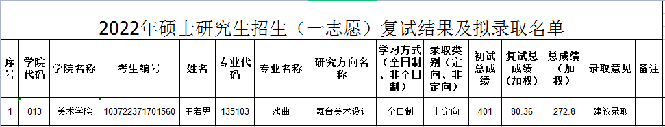 Beat365官方网站学科教学(美术)和戏曲专业舞台美术设计方向一志愿拟录取结果如下: