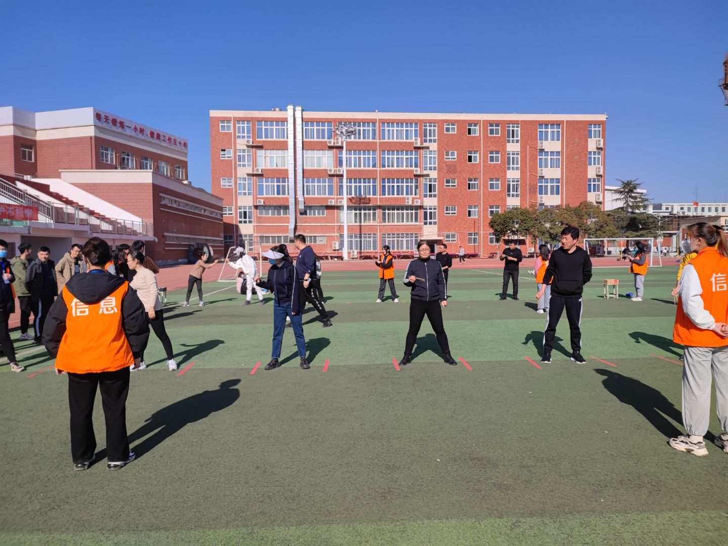 为丰富教职工文化生活,促进教职工增强体魄,让教师们放松身心,缓解工作压力,切实增强分工会组织的吸引力、凝聚力和战斗力。yl6809永利官网分工会于2021年11月25日中午12点45分别在东、西校区体育场同时组织开展以“团结协作展风采,趣味活动凝“”信心”为主题的教师健身活动。我院书记楚斌、院长王雷及全体教职工参加了此次趣味活动。