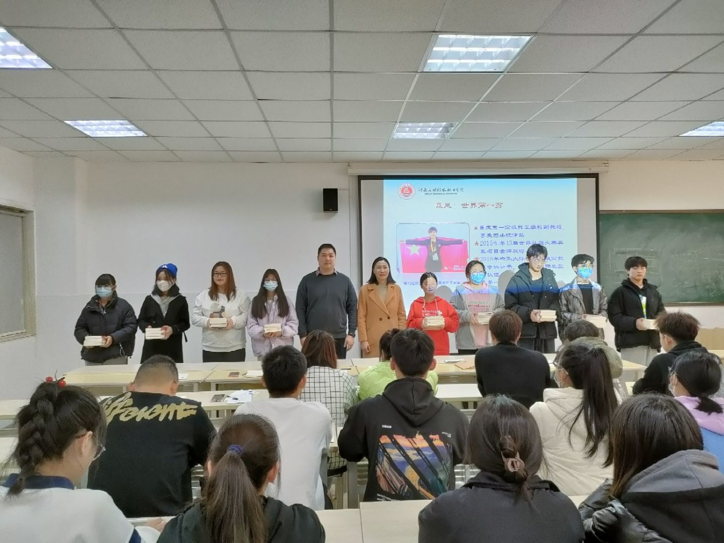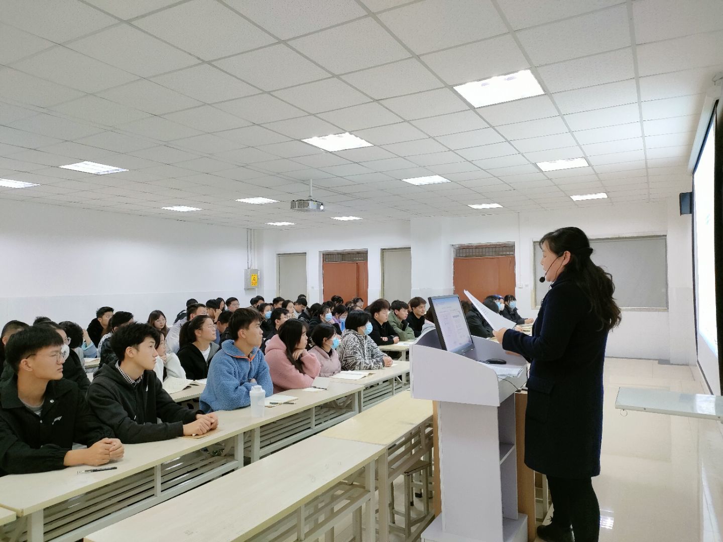 此次活动共分为两个环节:赠书与讲座。活动开始前,我院学生会成员组织60名参加人员进行集合、点名并完成签到,人员清点后带领同学们前往E楼406教室,组织同学们有序入座。