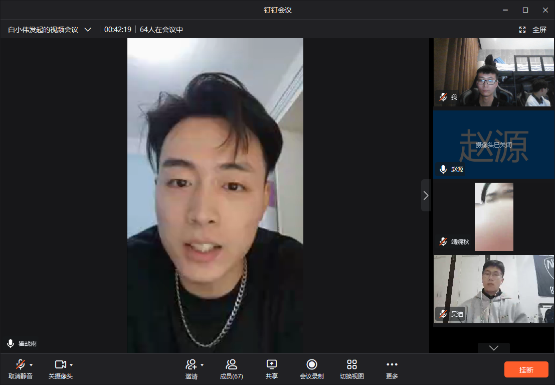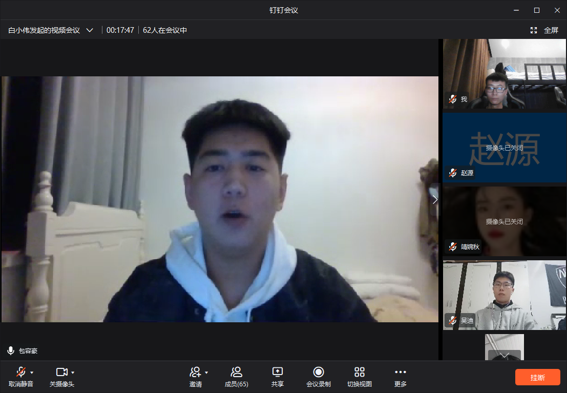 为了推进我院学生会的自身建设、保证学生会工作的连续性和稳定性,选拔出一批敢当责任、全心全意为同学服务的主席团成员,更有效地开展学院新学期的各项工作,2021年10月8日晚7时30分顺利召开了线上yl6809永利官网学生会2020级任职选举大会。本次任职选举大会由组织部部长白小伟主持召开,我院团总支书记赵源和19、20级全体学生会干事参与其中。