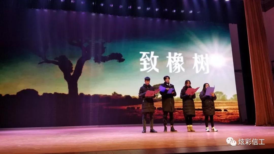 随后杨书记上台讲话,他肯定了yl6809永利官网团学会成员在2018年的工作,并对以后的工作提出了殷切希望。而书记带来的《少年壮志不言愁》的歌曲表演更是感染了在场的每一位人员。晚会中途为了让大家的热情继续高涨,安排的游戏互动环节,更使得这次晚会锦上添花。游戏结束,歌曲《遥远的你》、《左手右手》、《后来》等节目轮番上场,或浪漫温馨,或轻快悠扬,或活泼动感,风格各异,变幻多姿,让观众心旷神怡,沉醉其中。多姿多彩的演出节目展示了信工学子对青春的畅想,他们用自己独特的方式演绎着青春的故事,也表达了对新年到来的美好祝福。美好的时光总是匆匆而过,晚会最终在昂扬的旋律中完美落幕。