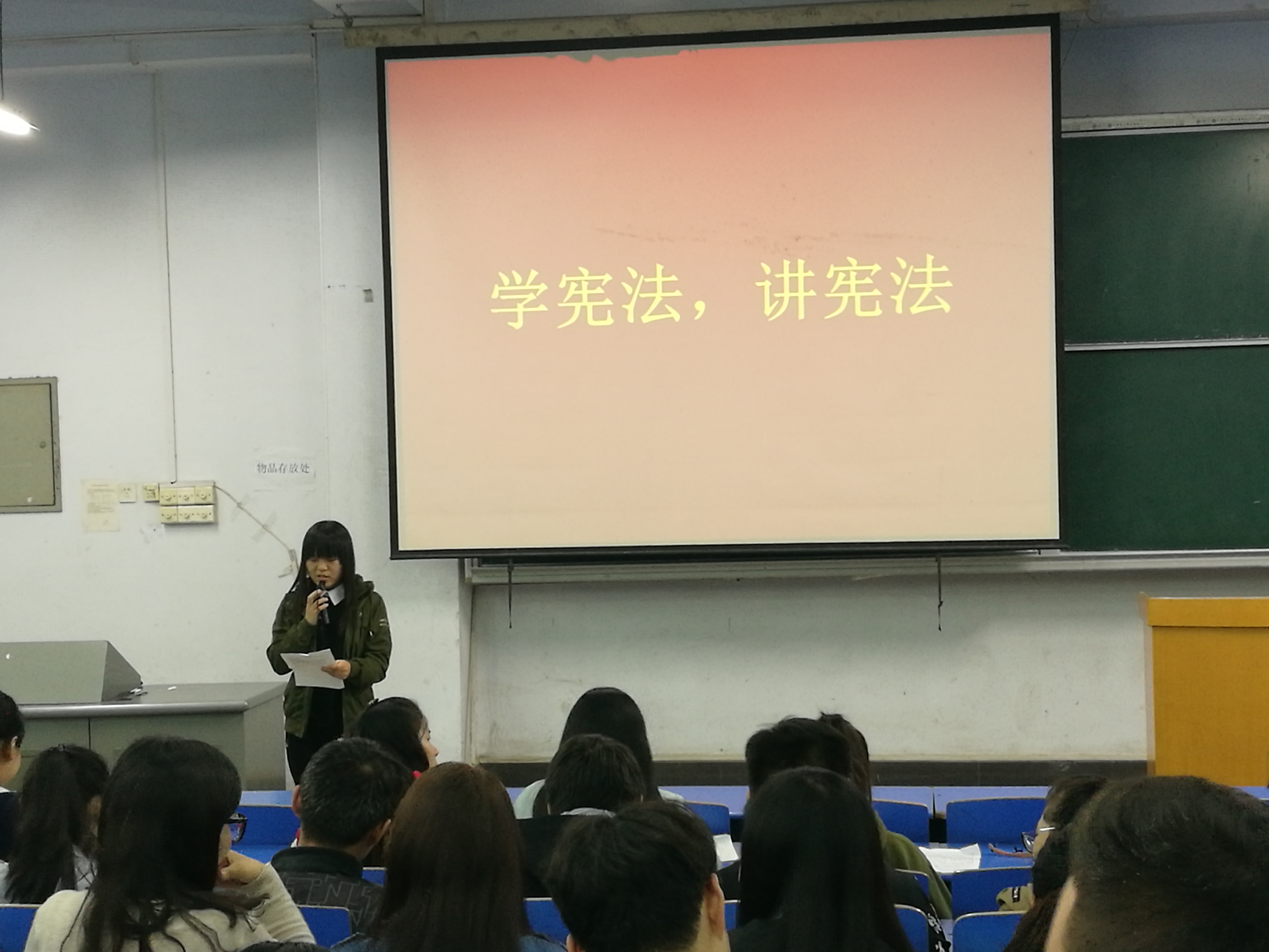 为认真贯彻落实教育部《青少年法治教育大纲》,推动青少年学生学习和宣传宪法,我院于2016年10月27日晚20:00在永利官网B101开展了以“学宪法讲宪法”为主题的演讲活动,在活动中各班入党积极分子热情参与,激情四射的讲述着自己的观点及见解。这次活动的成功开展,充分体现了同学们对我国宪法及法律知识的深入理解和对大学生活的热爱。12月4号是我国的全国法制宣传日,同时也是宪法宣传日。以宪法实施日作为"全国法制宣传日",就是要在全社会进一步强化宪法意识,树立宪法观念。