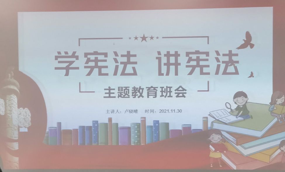 12月4日是第八个国家宪法日,为保证宪法深入到每一位学生心中,各班级组织召开了以 “学宪法,讲宪法”为主题的教育班会,各班班长在班会上以生动形象,新颖的方式向同学们介绍了有关宪法的知识,重点学习宣传了习近平新时代中国特色社会主义思想,特别是习近平法治思想,会上,同学们积极响应,认真学习宪法知识。