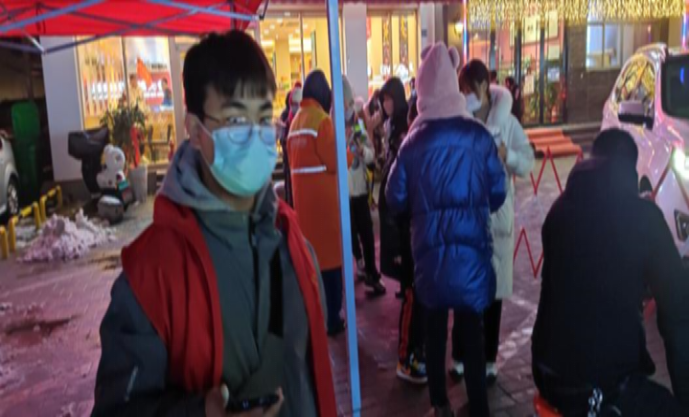 yl6809永利官网yl6809永利官网计算机2101班的赵依佳同学,在疫情期间积极参加了村内的疫情防控突击队。她每天早上八点半到晚上八点半都坚守在抗疫的岗位上,在站岗值班的同时维持着核酸检测的队伍秩序,在现场帮助年迈的老人注册核酸二维码,核对做核酸人员的名单。在风雪交加的恶劣环境中,赵依佳同学依旧保持着作为一名志愿者的热忱,帮助维护现场环境,清理积雪和垃圾,整理现场的板凳、桌子和登记表,虽然她不是医护人员但她也想尽自己所能,出可尽之力,同大家一起期盼疫情早日结束。