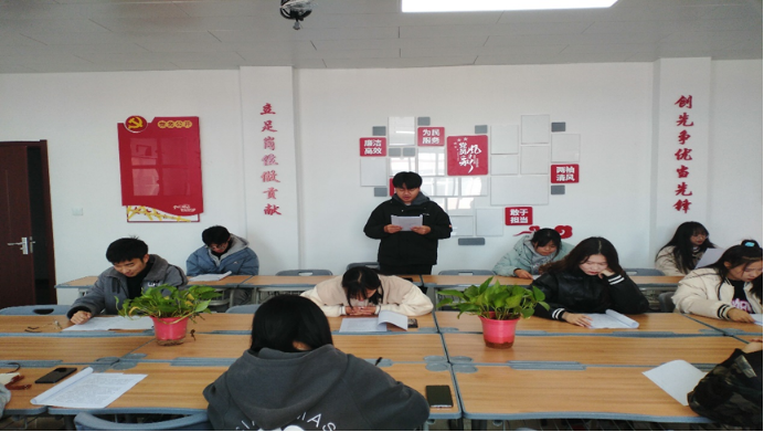 为不断提高对学生会干部的规范、科学管理力度,完善学生会干事管理制度,进一步做好我院学生会工作全面总结,推进学生会深化改革成果落地成效, 2021年12月18日中午1时,yl6809永利官网在党员活动室进行2021—2022年度团总支学生会第一次述职评议工作会议。本次述职评议工作会议由yl6809永利官网团总支书记赵源支持召开,学生会全体干部参与其中。