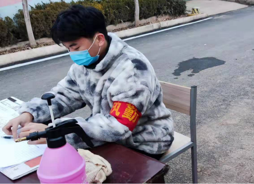 目前安阳疫情防控形势复杂、严峻,为全力配合政府做好疫情防控各项工作,自2022年1月7日起,yl6809永利官网yl6809永利官网计算机2001班学生张新宇主动请缨负责在村口进行卡点检查,期间主要负责察看行人的行程码和健康码,和外来人员、外来车辆的信息登记。近日安阳气温骤降,可他依旧坚挺着站在自己的岗位上。他说:“希望安阳可以顺利度过疫情,希望大家都平平安安的过年,也希望自己可以为家乡尽一些绵薄之力。”