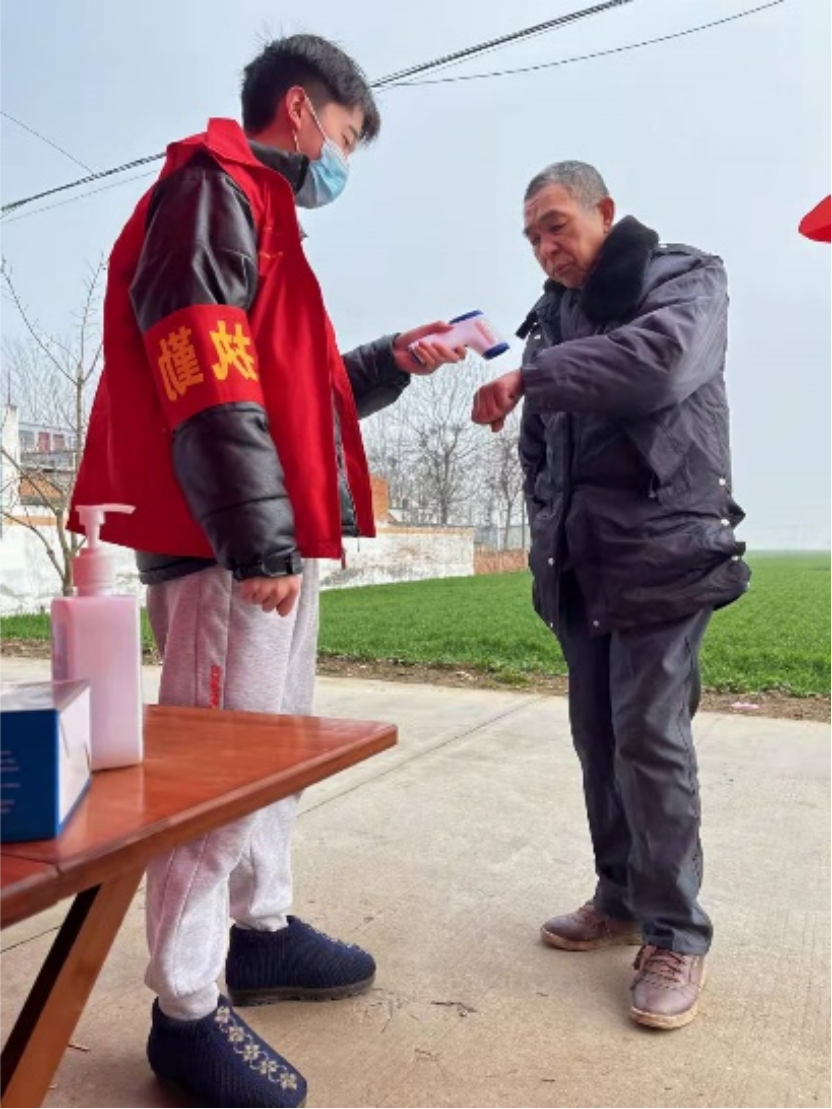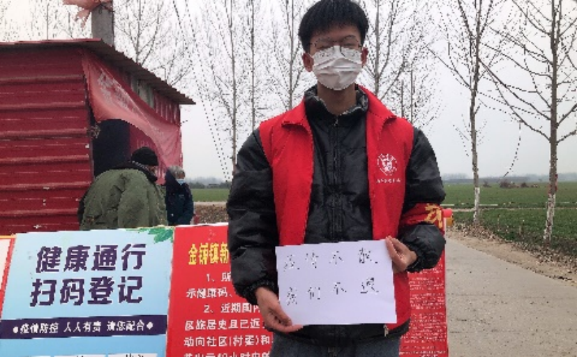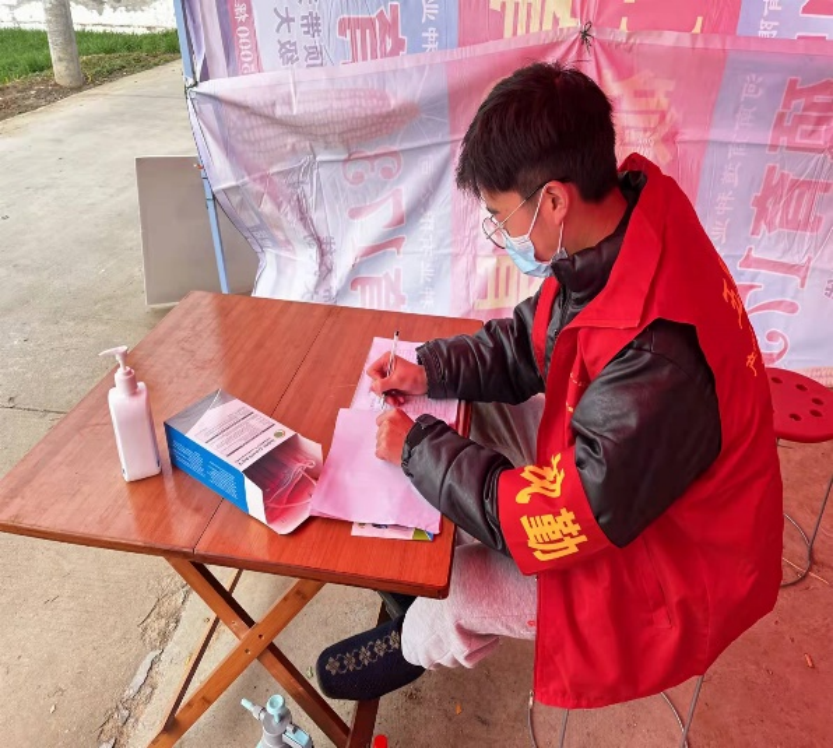 2022年1月10日至疫情结束,yl6809永利官网yl6809永利官网通信2001班朱海博同学,作为一名返乡大学生,他积极的投入到漯河市召陵区青年镇三朱村志愿者团队中。在这次的志愿者服务中,他主要负责返乡人员的信息登记和在疫情防控服务站值班站岗,为村里防疫奉献出自己的一点微薄之力,共同打赢这场抗疫攻坚战!
