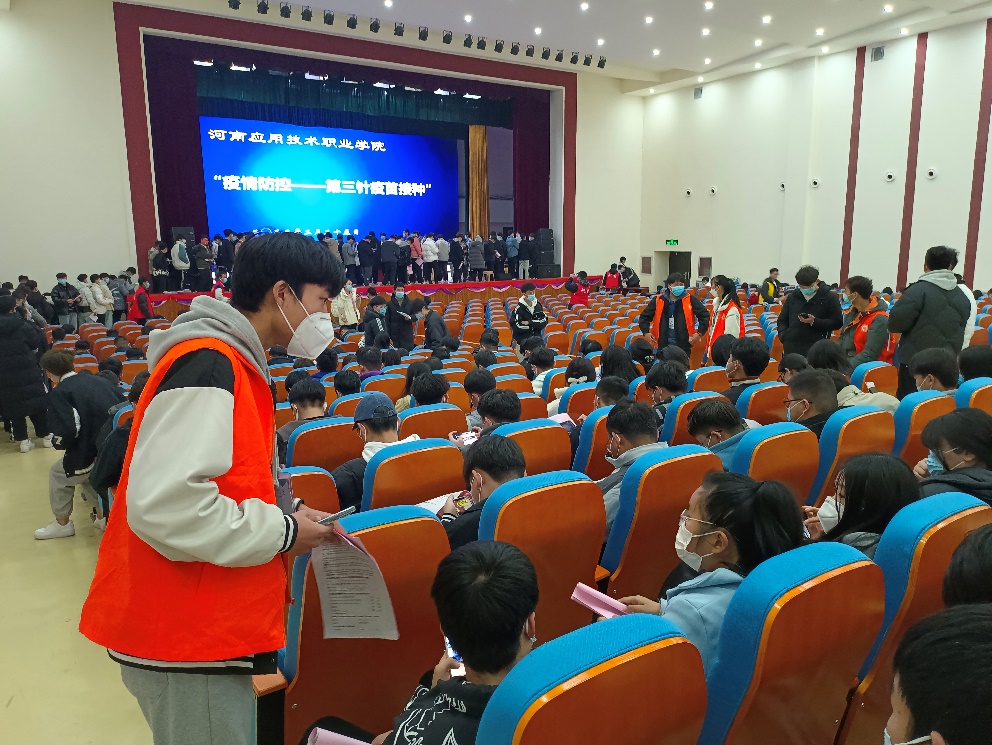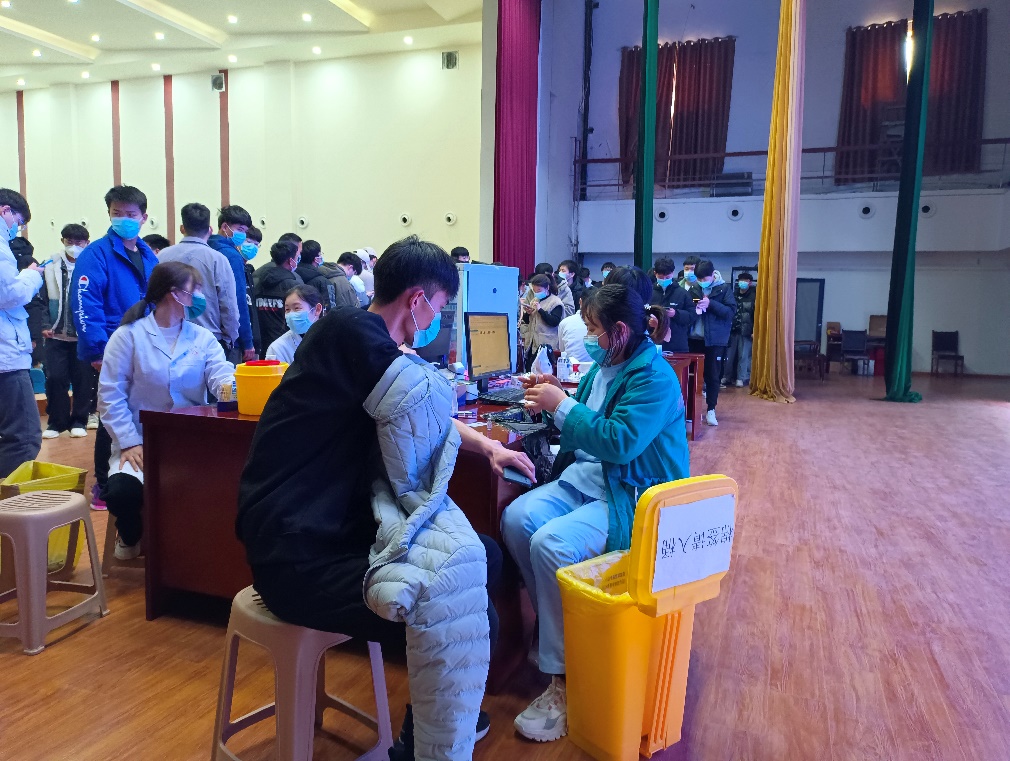 接种过程中,我院负责人在现场维持着秩序,并要求同学们在等待期间全程佩戴口罩,保持间隔距离,在登记区提醒同学们把准备好的相关证件提前拿出来;接种区内,技术娴熟的医务工作者们恪尽职守,一丝不苟的为同学们接种,有条不紊的进行消毒,注射;接种后同学们在引导进入留观区,隔位就坐,时刻积极询问接种后同学们有无不良反应等情况。整个接种过程井然有序,接种过程高效,迅速,在医务工作者和同学们的通力配合下,我院第二批“加强针”接种工作顺利完成。