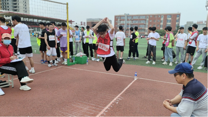 赛场上,我院运动健儿们激情飞扬、奋力拼搏;赛场下,加油声、欢呼声、喝彩声接连不断。运动员们在赛场上秉承“更高、更快、更强”的体育精神,赛出了风格,赛出了水平。在上午的比赛中,我院胡文俊同学在男子三级跳中以10.86米的成绩取得了校级第五名。
