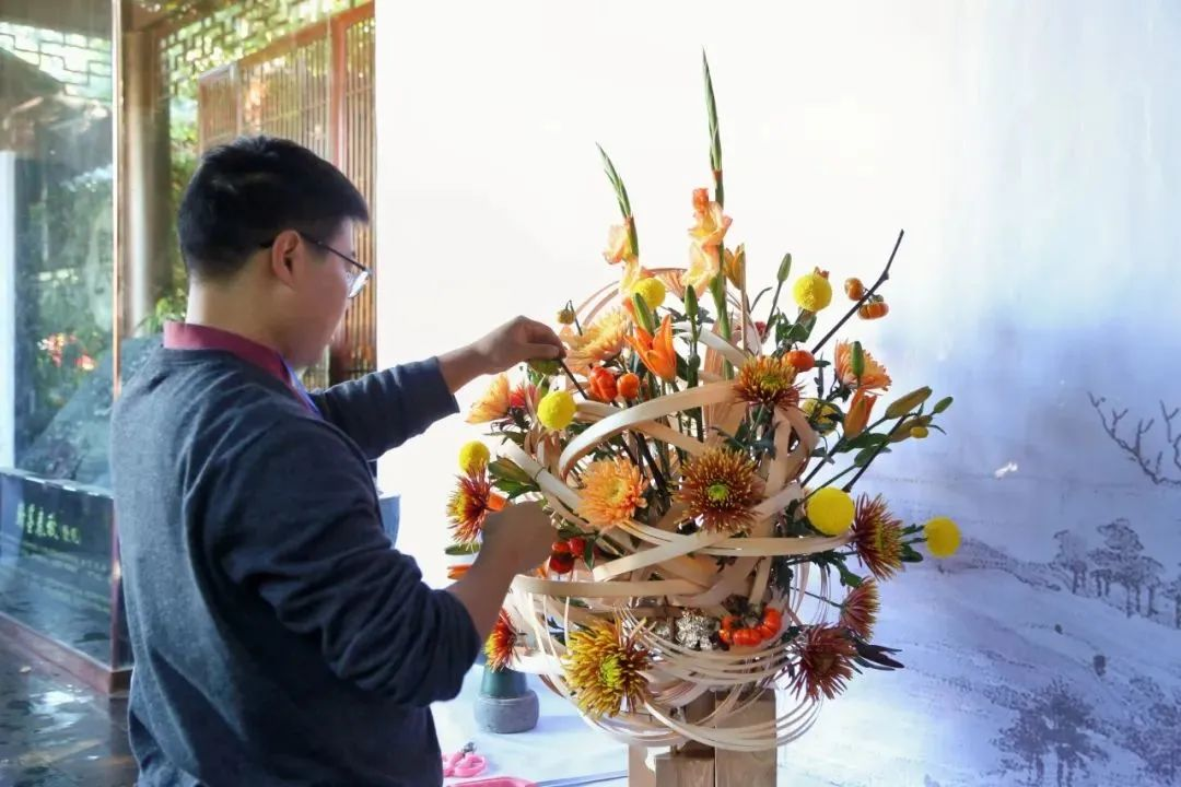 观看来自全国各地的插花老师们大展身手,