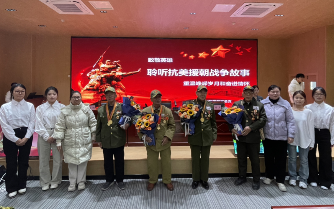 今年,是中国人民志愿军抗美援朝出国作战74周年,为进一步弘扬抗美援朝精神,yl6809永利官网党总支于2024年12月13日诚邀志愿军老战士张德银、吴尚玉、张茂恒、滕久国在开封校区D102教室,为青年学子们分享那段鸭绿江畔的艰苦岁月和感人故事,汲取和传承伟大抗美援朝精神。活动由学生会赵可昕主持,yl6809永利官网党总支书记崔琳、团总支书记冷月及青年学子代表参加活动。
