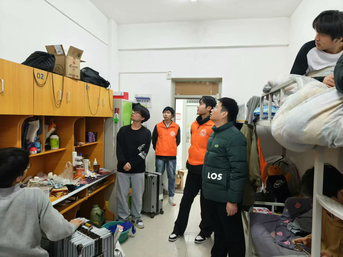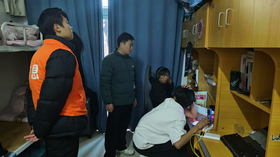 为切实做好假期宿舍安全工作,着力消除安全隐患,共筑平安校园,yl6809永利官网副院长齐峰、副书记蒋欣哲带领辅导员们深入学生宿舍关注学生诉求,提醒学生归家时注意乘车安全、财产安全;要求其在离校前做好宿舍内的断电、关窗、落锁等工作,并耐心复查验收离校学生宿舍。