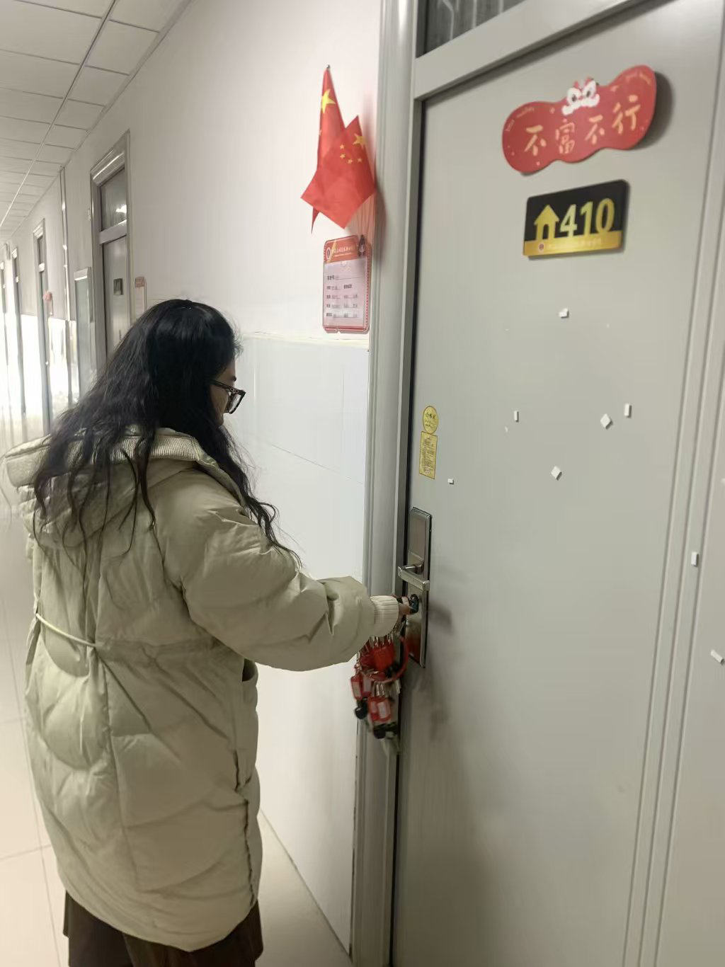 随后,辅导员对全院学生宿舍进行“三关一收”大检查。本次寒假安全检查专项工作,旨在排查学生宿舍安全隐患,营造舒适安全的学习生活环境,为期末及寒假离校期间校园宿舍安全保驾护航。我院将继续秉持“预防为主,安全第一”的理念,持续加强宿舍安全建设,筑牢消防防线,共建平安校园。