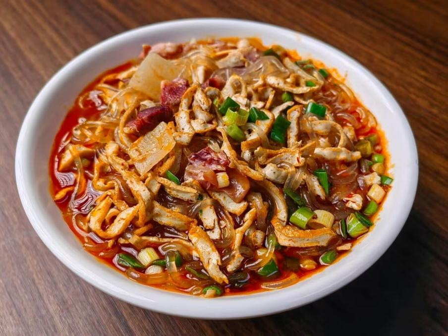 再看食材,那叫一个丰富实在。爽滑劲道的粉条,在锅里尽情吸收汤汁的鲜美,每一口都饱含着醇厚的味道。鲜嫩的牛肉、羊肉,纹理清晰,切得薄厚适中,软嫩的口感中带着肉香,一咬下去,满满都是幸福感。还有那新鲜的豆腐丝,被汤汁浸润得恰到好处,增添了独特的口感。