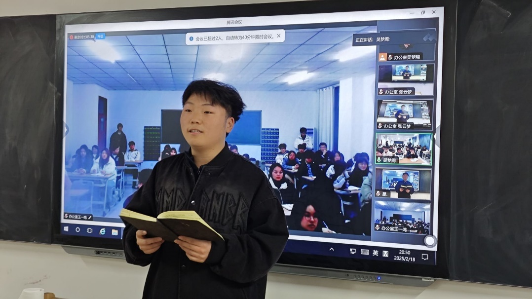 博观而约取,厚积而薄发。为有序推进新学期学生会工作开展,提高学生会成员综合素养,2025年2月18日,yl6809永利官网于郑州校区和开封校区同步开展新学期第一次学生会周例会,本次会议由主席团郑志宇主持,团总支书记冷月、学工办主任常昆、学生会全体成员参会。