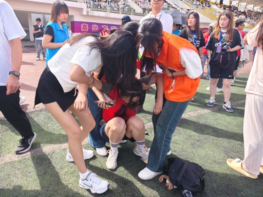 在学生运动员全力冲刺时,我院教职工也踏上了这片赛场。有的投身比赛,他们展现出齐心协力、奋勇争先的精神品质;有的是严谨认真的裁判,目光专注、神情严肃,以专业和公正确保赛事的有序推进。正是他们的努力共同绘就了校园运动会的精彩图景。