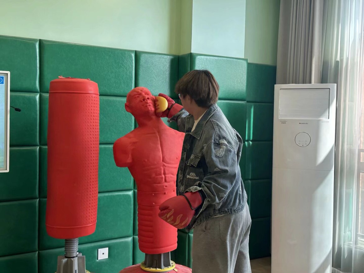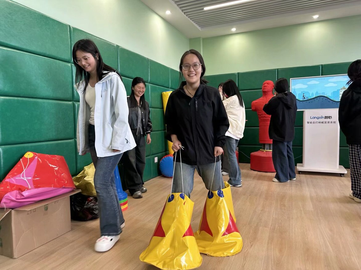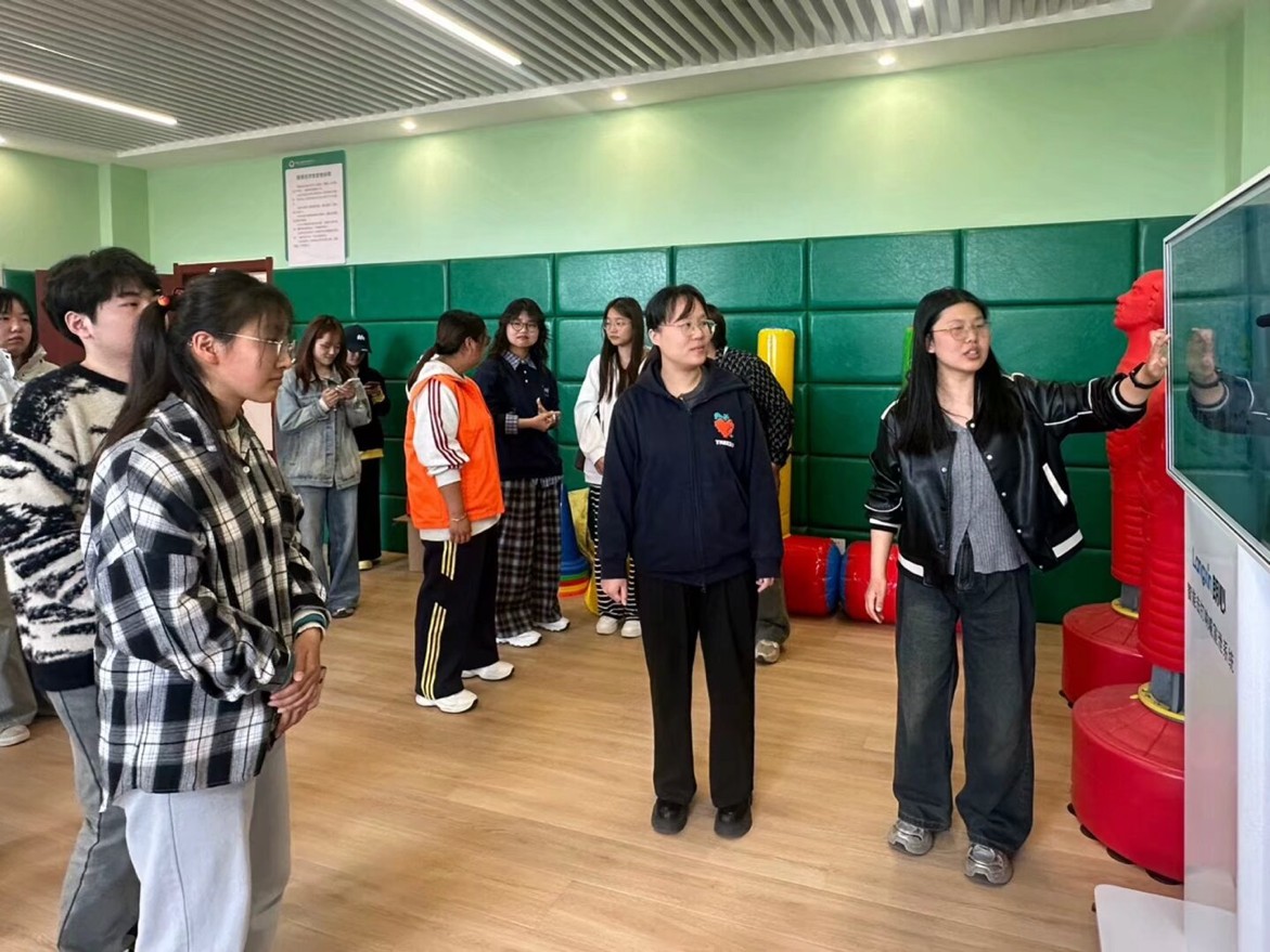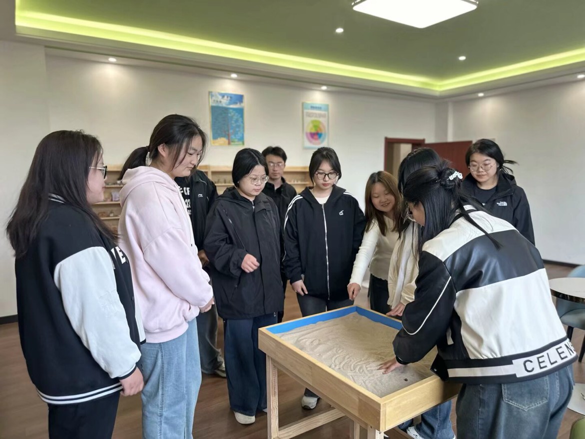 随后,带领同学们参观了各个中心功能室,包括心理沙盘室、个体心理咨询室、团体活动室、情绪宣泄室等。每组同学均有序体验了各个功能室的相关功能,同学们放松身心投入其中,与小组成员积极互动,欣赏学生作品,参与活动创作。