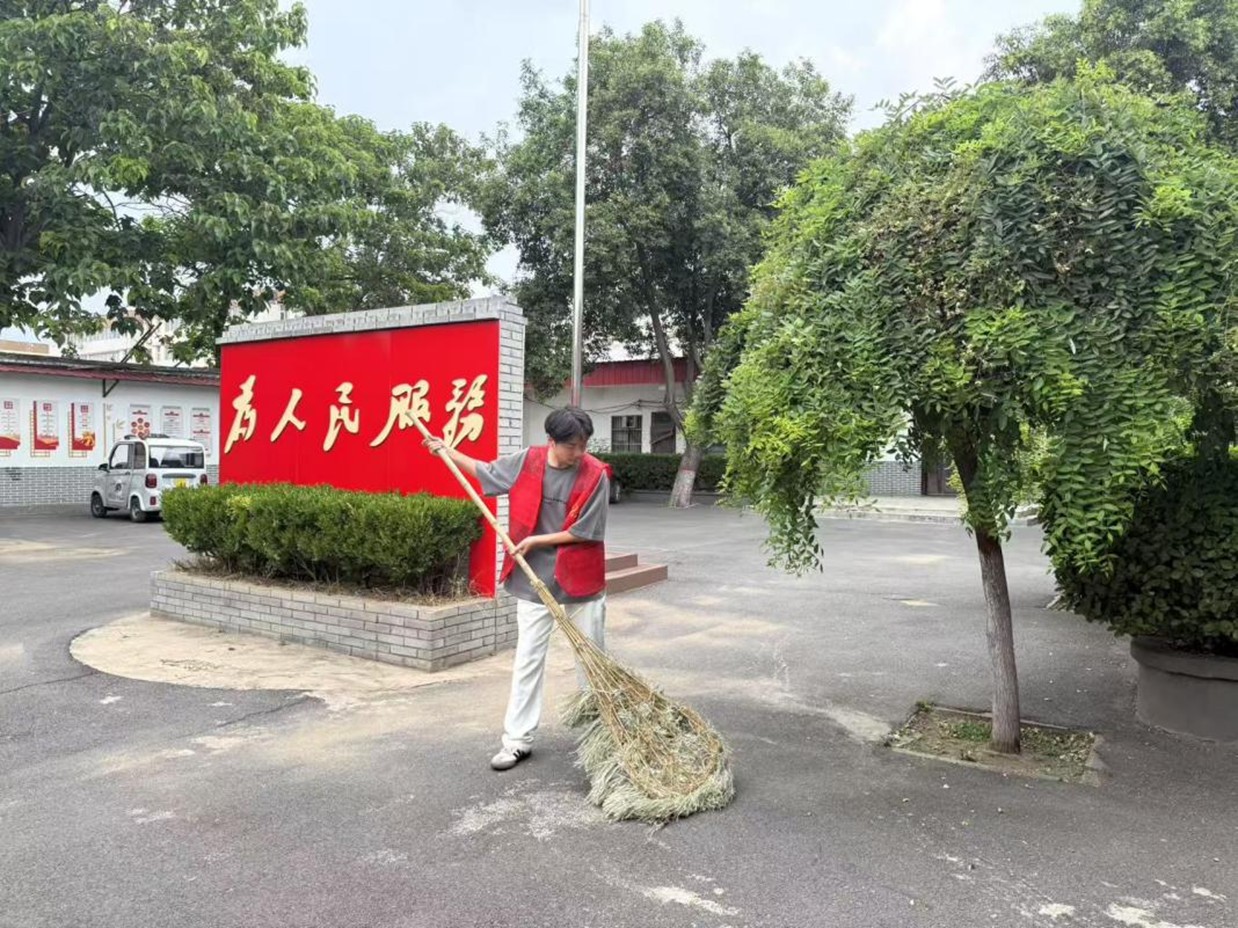 七天的返乡劳动,从清扫街巷到疏通沟渠,汗水一次次滴落在焦作的黄土地上,也一点点浸润进我的心里。为老人分发口罩时,他们接过物品的手带着岁月的温度;帮乡亲们清运垃圾时,耳畔传来的乡音里满是朴实的认可——“这娃中”。正是这些瞬间让我恍然明白:服务从不是机械的任务,而是要将在大学里习得的认知与能力,转化为给家乡捧上的一碗水、递去的一把扫帚,实实在在地解决身边的小事。