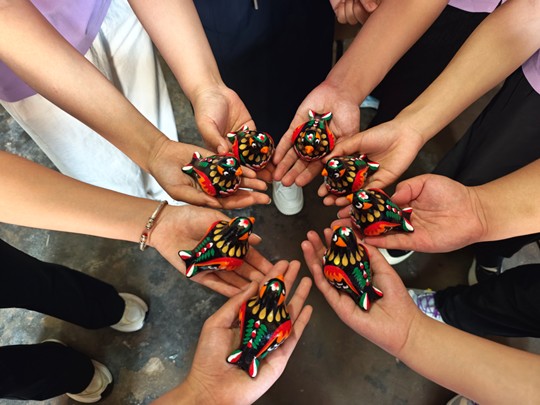 首先,团队成员们来到中国泥塑第一村杨玘屯村,走进泥咕咕研究院,与研究院院长王红瑞进行了深入访谈。王院长手持一件古朴的泥哨,声情并茂地讲述:“泥咕咕,俗称‘泥哨子’,是我们浚县特有的民间艺术,历史可追溯至隋唐,甚至更早。它以黄河胶泥为骨,经过捏塑、晾干、窑烧、点画等十多道工序而成。”他指着展柜中形态各异的飞禽走兽、神话人物,他们都不仅仅是玩具,也是承载着先民对自然的敬畏、对生命的礼赞、对吉祥的祈愿,是黄河岸边农耕生活的生动写照和民间智慧的结晶。