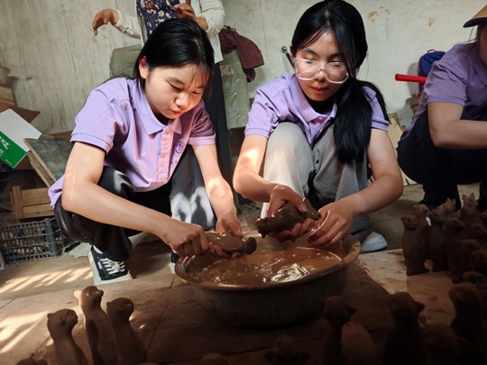 民间艺术家王蓝田的后人陈晋风热情招待了实践团,并带领成员们亲身体验了泥咕咕、泥猴的制作技艺,使成员们真切感受到指尖泥土的温度与塑造作品的喜悦,也深刻感悟了“十多道工序”背后匠人坚守的不易与技艺的繁复精深。