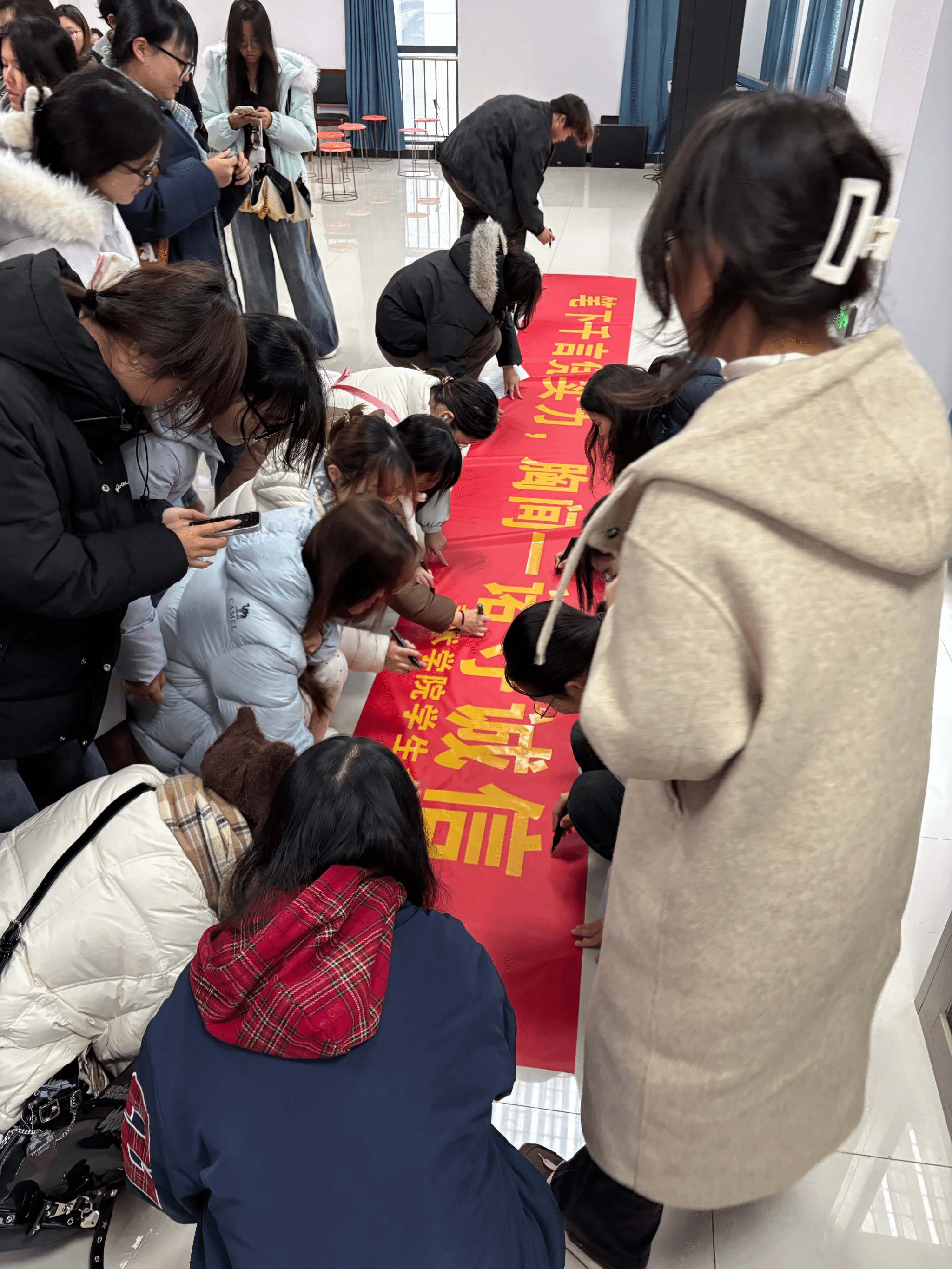 会议结束后,2025级全体新生以班级为单位开展了《诚信考试承诺书》签名活动,团学干部和老生代表也在“笔下千言凭实力,胸间一诺守诚信”的横幅上开展了签名活动和郑重承诺,Beat365官方网站学生会也为同学们送上了亲手书写并制作的“马到成功”“梦想成真”“勤学静思”等书签,同学们在收到惊喜的同时,纷纷表示一定会严守考纪、从我做起,以积极自信的状态迎接期末考试,考出真实水平,展现学习成果。