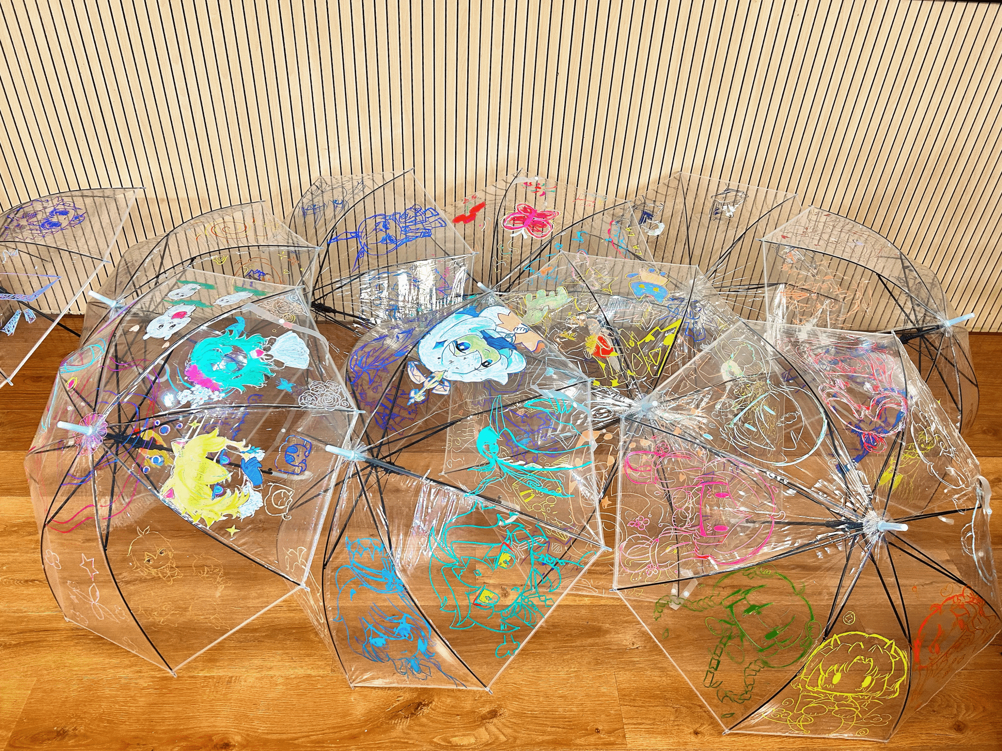 “夏季是一年中降水最多的季节,绘制完成的透明雨伞刚好可以给同学们用于遮风挡雨。此外,希望通过此次活动,参与同学能在燥热的天气中静心创作。”谈及举办此次活动的初衷,活动负责人、动画专业2023级的张楠楠介绍。为了让参与学生拥有更好的体验感,张楠楠与学院动漫俱乐部的管理人员提前准备了25把透明雨伞与4盒丙烯颜料笔。