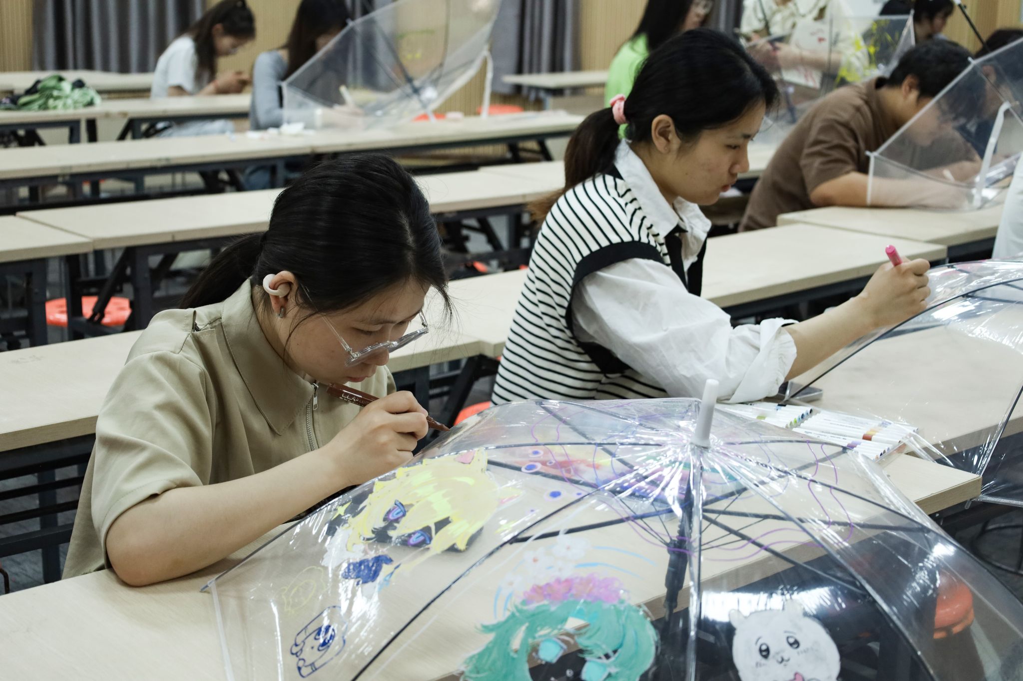 俯身在伞面上悉心勾画,画笔起落间,一个线条灵动的动漫角色便出现在伞面上。“伞面上的图案是我喜欢的一位动漫角色,我想通过此次活动让更多人了解它,并在活动中结识更多同好。”美术学专业2023(2)班的朱菡娜坦言,此次活动为她提供了一个展示自己喜爱的动漫角色与结交新朋友的契机,今后,她希望能更多地参与类似的活动。