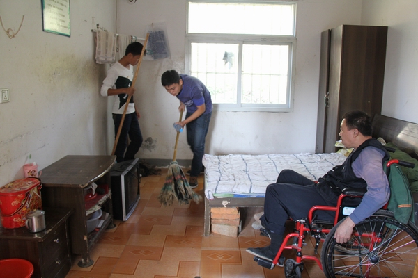 在五横乡敬老院,志愿者们有的为老人整理房间和打扫卫生,有的陪老人聊天。一些老人说话已经不那么利索,耳朵也不太好使,与志愿者们的聊天排解了他们内心的寂寥。为了让老人们感受到更多关爱,有些同学还主动为他们按摩起来,像是对待自己家中的长辈一般,让他们感动不已。志愿者们还帮助敬老院的工作人员一起打理菜园,浇水,除草……活动中,志愿者们精心准备了歌唱、舞蹈与戏曲等文艺节目,老人们欣赏得津津有味。活动的最后,志愿者们将该院经济困难生捐赠的10幅优秀作品捐献给了敬老院。