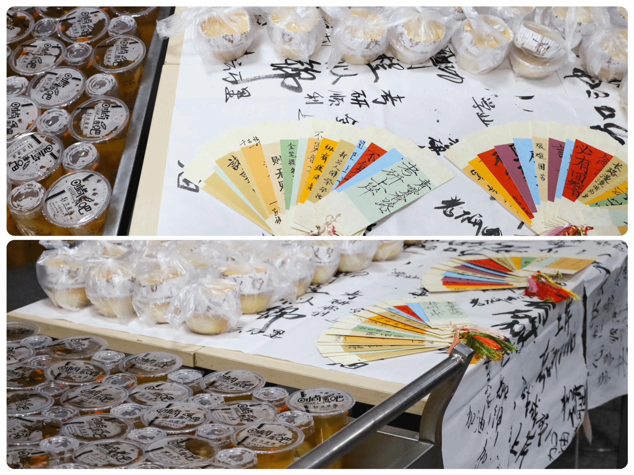 从购买材料到送出礼物,历时半个月,志愿者与学院书法俱乐部的成员共制作出20个折纸书签、40张书法明信片、60杯银耳雪梨羹以及120份烘培面包。“考虑到天气比较干燥,而银耳雪梨羹有滋阴生津、润肺止咳的功效,我们便将它与刚出炉的面包搭配在一起,可以让学长学姐在紧张备考的氛围中缓解一些压力,增强体质。”活动负责人之一、美术学专业2022(1)班的张乐添说。