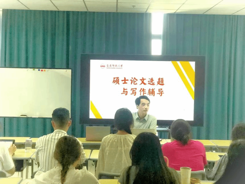 2024年5月23日下午,安徽师范大学朱德义教授来Beat365官网为学生开展论文选题与写作辅导的讲座,旨在帮助学生提高学术研究能力,确保论文质量,Beat365官方网站全体研究生和部分本科生参加了讲座。会议由Beat365官方网站副院长苏志岩主持。