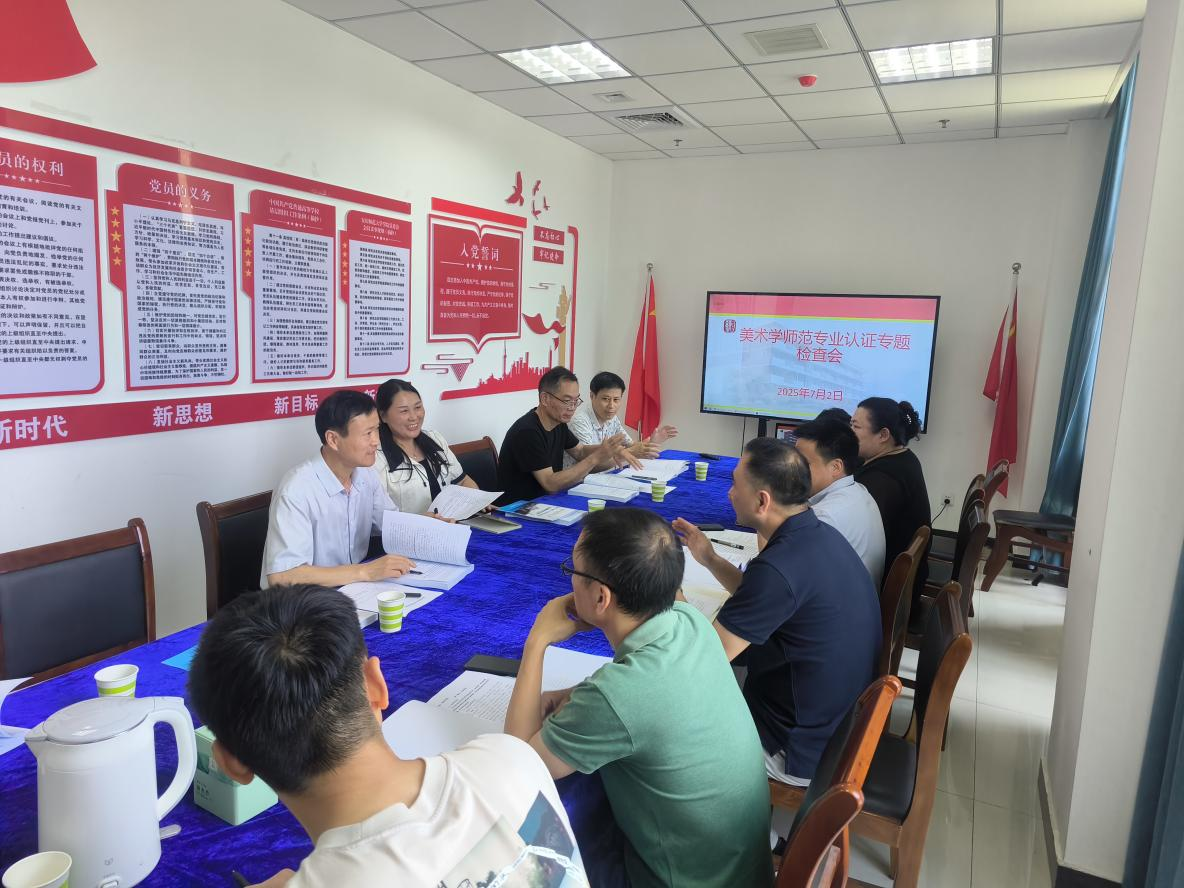 7月2日,学校质评处处长林秋菊带领王先荣、黄兴帅、何李来、陈磊等专家到Beat365官方网站检查指导美术学专业师范专业认证工作。Beat365官方网站领导班子成员及美术学专业负责人、教研室主任、骨干教师代表参加了会议。